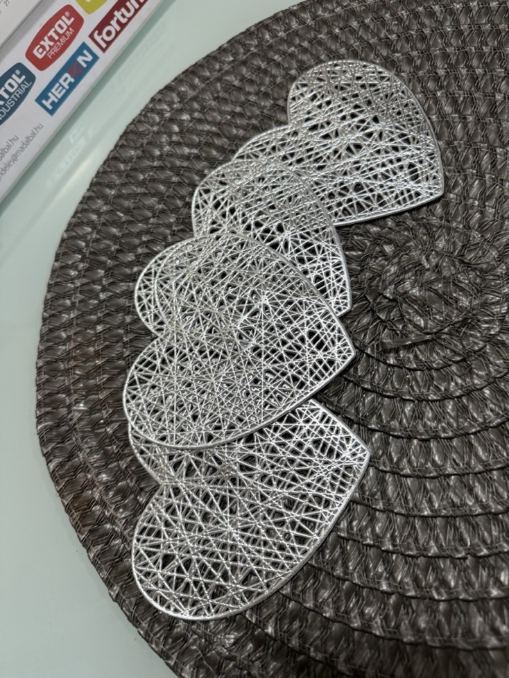 Cute heart-shaped coasters. In silver. Lovely.
